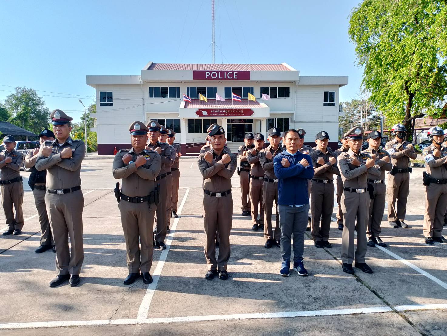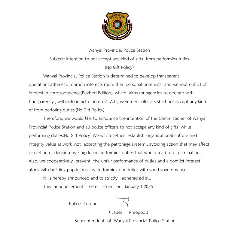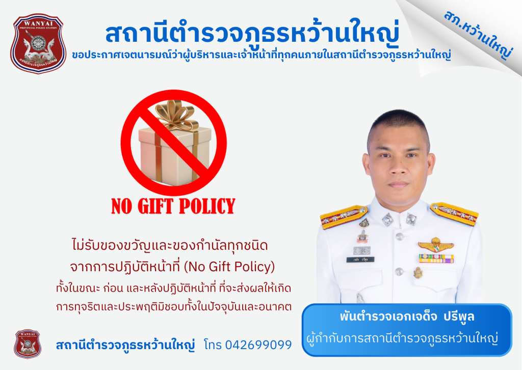 ผกก.สภ.หว้านใหญ่ พร้อมด้วยข้าราชการตำรวจ สภ.หว้านใหญ่ แสดงเจตนารมย์ ไม่รับของขวัญ ต่อต้านการทุจริตคอร์รัปชั่น ในหน่วยงาน