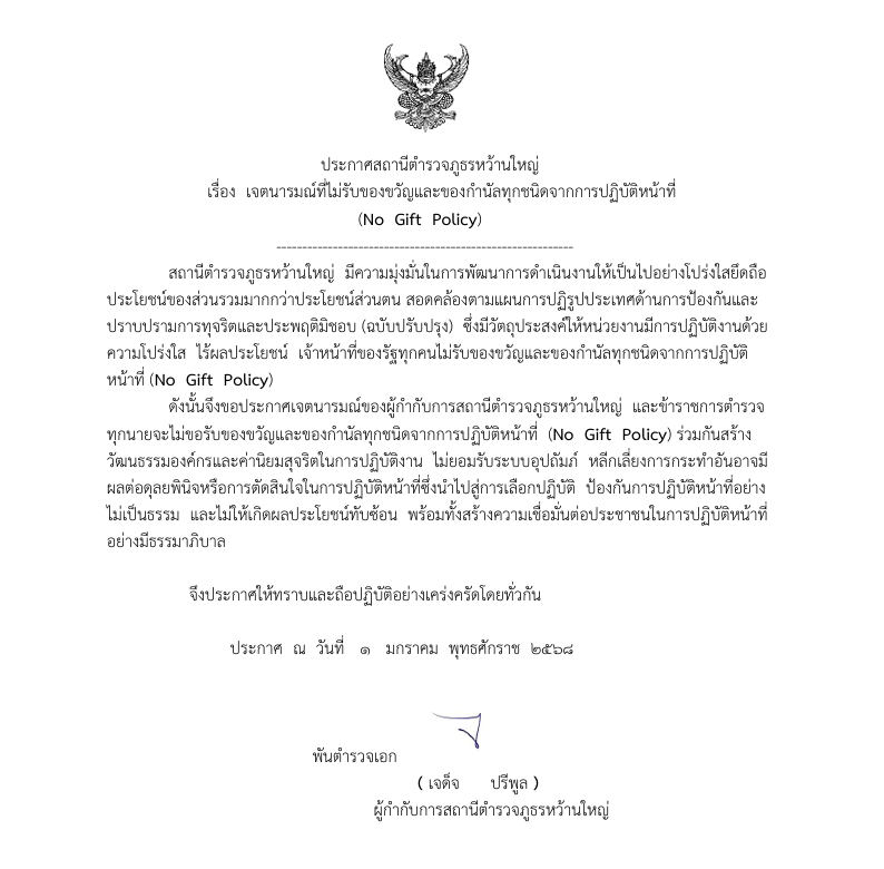อินโฟกราฟิกนโยบายไม่รับของขวัญและของกำนัลทุกชนิด (No Gift Policy) จากการปฏิบัติหน้าที่