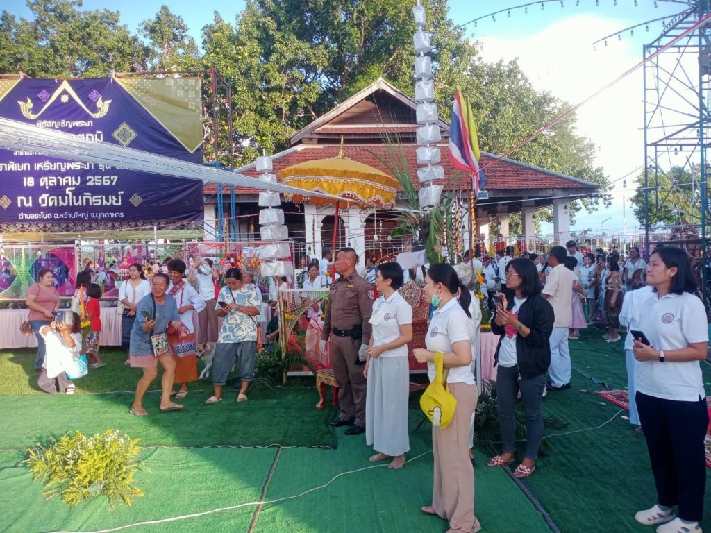 พร้อมด้วย  ว่าที่ร้อยตรีเอกวัฒนา คงคาน้อย นายอำเภอหว้านใหญ่, ผู้แทนจากกรมศิลปากร พร้อมด้วยหน่วยงานราชการ กำนัน ผู้ใหญ่บ้าน และชาวบ้านชะโนด อำเภอหว้านใหญ่  ได้จัดขบวนอัญเชิญพระงา (งาช้างแกะสลักพระพุทธเจ้า 8 พระองค์)  จากสถานีตำรวจภูธรหว้านใหญ่ ไปจัดพิธีพิธีบวงสรวง,พิธีเจริญพระพุทธมนต์,พิธีพุทธาภิเษก   ณ  วัดมโนภิรมย์  บ้านชะโนด ตำบลชะโนด อำเภอหว้านใหญ่ จังหวัดมุกดาหาร